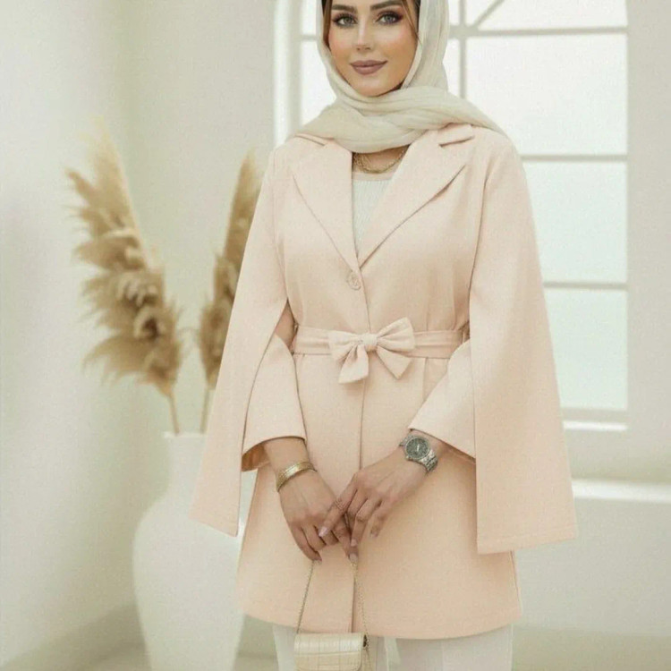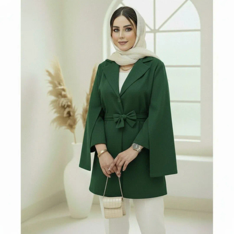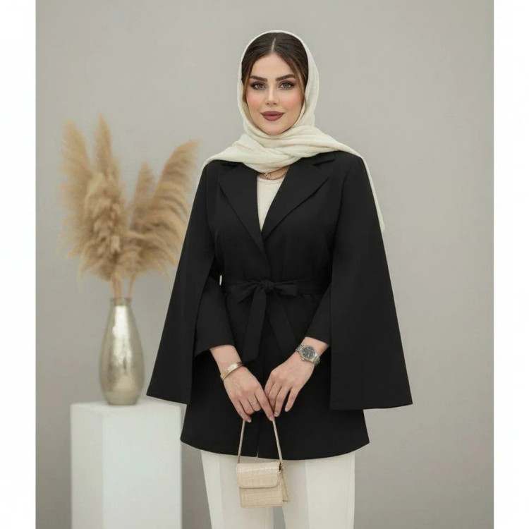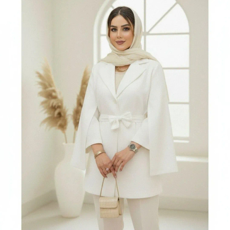 مانتو شنلی با جنس مازراتی و رنگ بندی متنوع شامل سفید، مشکی، سورمه ای، سبز، کرم، طوسی، استخوانی، بنتون، آبی و کاراملی. مناسب برای سایز تا ۴۶ با قد ۷۵ و دارای دکمه کاربردی و کمربند.