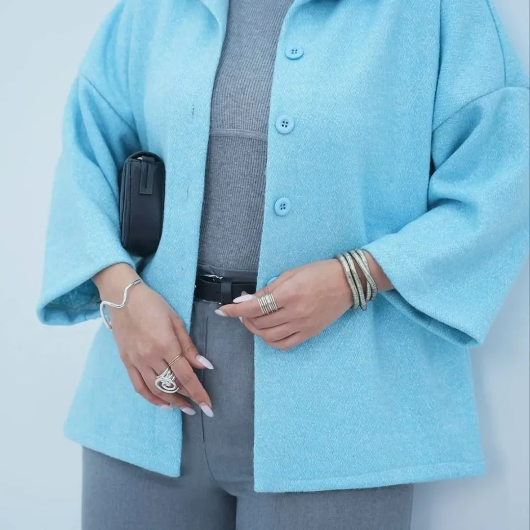 پالتو ملین جنس فوتر کچه اعلا با رنگ بندی آبی اسمانی، خردلی، زرشکی، سبز، صورتی و مرجانی. طول پالتو ۶۶ سانتیمتر، دور سینه کیمونو ۱۲۲ سانتیمتر، دور باسن ۱۱۰ سانتیمتر، قد آستین از یقه ۵۵ سانتیمتر و دور بازو ۴۶ سانتیمتر.