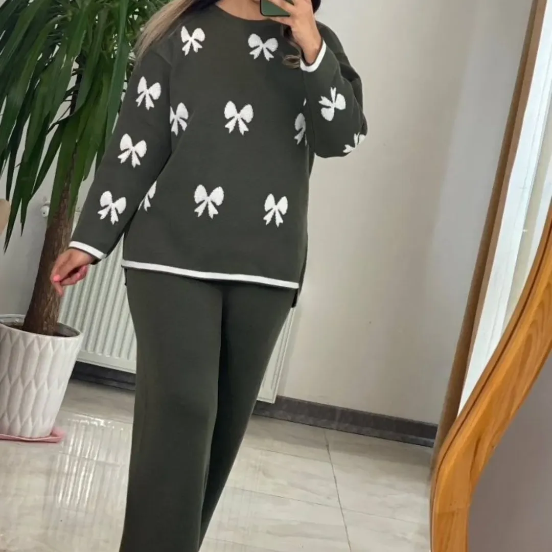 جنس: بافت درجه یک. دورسینه 120، قد جلو بلوز 68، قد پشت بلوز 72، قد آستین از سرشانه 45، قد شلوار 98. هر دو طرف بلوز چاک دارد.