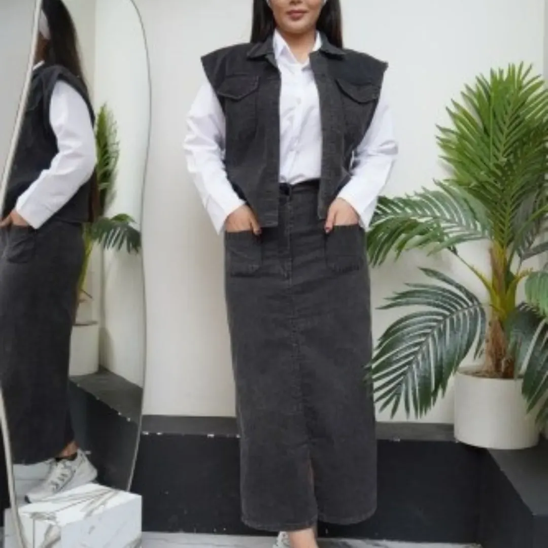 ست سه تیکه دامن جلیقه عیدانه شیک و زیبا با جنس عالی درجه و تضمین کیفیت. تنخور فوق العاده شیک و جذاب. شامل جلیقه، دامن و شومیز داکرون.