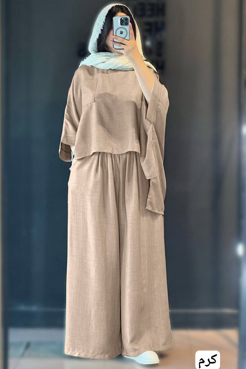 ست دو تیکه گندم بسیار عالی و باکیفیت هست رنگبندی عالی شماره پشتیبانی